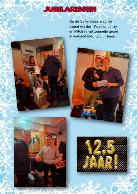 JUBILARISSEN Op de Sinterklaas surprise avond werden Yvonne, Jordy en Mitch in het zonnetje gezet in verband met hun jubileum.