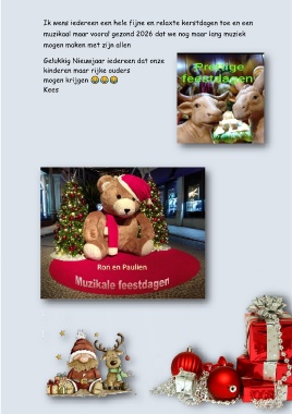 Ik wens iedereen een hele fijne en relaxte kerstdagen toe en een muzikaal maar vooral gezond 2026 dat we nog maar lang muziek mogen maken met zijn allen Gelukkig Nieuwjaar iedereen dat onze kinderen maar rijke ouders mogen krijgen Kees